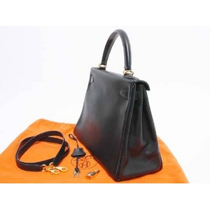- 【現品限り】エルメス ケリー28 内 黒 ブラック ゴールド金具 【中古B】