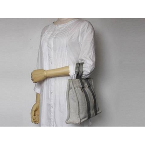 金具に小キズ、表面・四隅にスレ・汚れ、ハンドルに毛羽立ち、内側ポケットにシミが見られます。箱・保存袋なし。